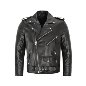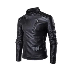 Men’s Biker Slim Fit Black Faux Leather Jacket