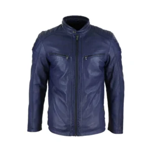 Men’s Slim Navy Blue Faux Leather Jacket